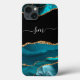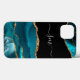 Teal Blue Agate Monogram Script Stone Gold Black Case-Mate iPhone Case
