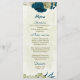 teal blue and beige flowers botanical wedding menu