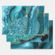 Teal Blue and Gold Faux Glitter Agate Wrapping Paper Sheets