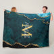 Teal Blue and Gold Marble Agate Fleece Blanket