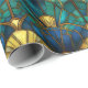 Teal, Blue and Gold Peacock Stained Glass Wrapping Paper
