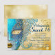 Teal Blue and Gold Sweet 16 Masquerade Party Invitation