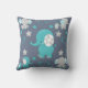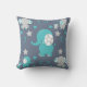 Teal Blue and Gray Baby Elephants Pattern Print Throw Pillow