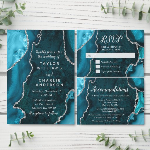 Teal Blue and Silver Agate Marble WeddingDesigned by Kirsty W
