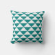 Teal Blue and White Geometric Triangular Pattern Throw Pillow