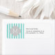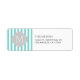 Teal Blue and white Modern Stripes Return Address Labels with Monogram. Light Gray quatrefoil.