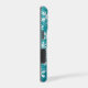 A stylish teal blue and white snowflake pattern is featured on this holiday themed custom iPhone case. Perfect for Christmas!