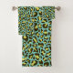 Teal Blue and Yellow Leopard Print Trendy Bath Towel Set