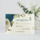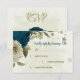teal blue beige flowers botanical wedding RSVP card