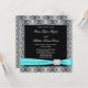 Teal Blue Black Silver Lace Classy Wedding Invitation