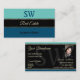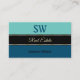 Make a lasting impression with this stylish business card design featuring teal and blue colored stripes on black with pretty shimmery small gold decor.