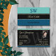 Teal Blue Borders on Black with Monogram and Photo Business Card