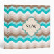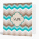 Teal Blue Brown Chevron Modern Monogram Binder