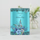 Teal Blue Butterfly Floral Black Lace Birthday Invitation