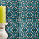 This ceramic tile is a captivating piece of artistry, boasting an intricate geometric pattern that immediately draws the eye. The design is symmetrical and features a harmonious blend of teal, dark blue, and coral hues, creating an elegant kaleidoscope effect. The pattern is composed of meticulously crafted petal-like shapes and squares that converge to form larger, blossoming figures. This attention to detail adds depth and complexity to the design, making it a mesmerizing visual experience. The tile exudes a contemporary yet timeless aesthetic. Its modern design elements are balanced with a classic color palette, making it a versatile piece that could complement a variety of interior settings. Whether used as a statement piece or to add a touch of sophistication to a room, this ceramic tile is sure to enhance any space with its unique style.
