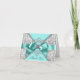 Teal blue thank you card with beautiful teal blue and silver gray swirl background and elegant teal blue diamond bow. Add your text in the font style and color of your choice, or delete the text.