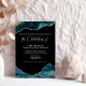 Teal Blue Faux Silver Glitter Agate Wedding Foil Invitation