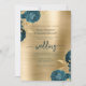 Teal Blue Floral Gold Brushed Metal Wedding Invitation