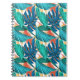 Teal & Blue Floral Leaves Pattern Design Notebook