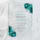 Teal Blue Floral Silver Frame First Holy Communion Acrylic Invitations