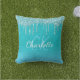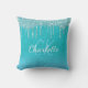 Teal blue glitter drips aqua sea green monogram outdoor pillow