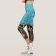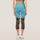 Teal Blue Glitter Leopard Print Abstract Capri Leggings