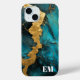 Teal Blue Gold Abstract Marble Monogram Case-Mate iPhone Case
