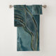 Teal Blue Gold Abstract Watercolor Waves Bath Towel Set