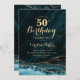 Teal Blue Gold Agate Marble 50th Birthday Invitation