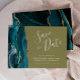 Teal Blue Gold Agate Olive Green Save the Date Invitation