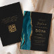 Teal Blue Gold Agate QR Code 50th Birthday Invitation