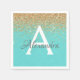 Aqua Blue and Gold Faux Glitter and Sparkle Elegant Monogram Birthday Party Napkins. These Turquoise and Glitter Birthday Party, Bridal Shower, Wedding, Baby Shower Napkin can be customized to include your initial and first name.