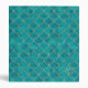 Teal Blue & Gold Monogram Mermaid 3 Ring Binder