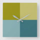 Teal Blue Gold Yellow Square Wall Clock