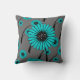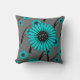 Teal Blue Gray Black Floral Flowers Throw Pillow