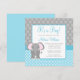 Teal Blue Gray Elephant Polka Dot Boy Baby Shower Invitation