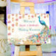 Teal blue green cerise floral peacock personalized welcome sign, with mandala light background, nice for Indian, Islamic functions to give an extra touch at the entrance and always popular peacock theme.
