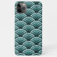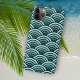 Contemporary seafoam, seaglass, teal blue green, and black ombre colored retro abstract geometric Japanese Chinese Seigaiha scales pattern design. Beautiful, modern, and cool cover for the trend-savvy and art-loving hip trendsetter, artsy motif lover. This design is available in Apple iPhone 6, 7, and 8 Plus, 10 or X, XR, XS, 11, 12, 13, 14 Mini, Plus, and Pro Max cellphone cases. Show off your style, look fashionable, and feel stylish with a unique design on a mobile device accessory of your choice.
