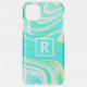 Teal Blue Green White Abstract Waves Monogram Cute Uncommon iPhone Case