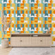 This design showcases a modern geometric pattern with circles and half-circles in shades of seafoam green, teal blue, yellow, and orange against a white backdrop. It's an elegant and stylish design that embodies eclectic minimalism, perfect for artistic interior designers, decor enthusiasts, trendsetters, and fans of vintage retro or abstract digital geometric motifs. This ornate yet funky hipster pattern is versatile, available on a variety of contemporary home decor items, making it suitable for enhancing the ambiance of spaces such as master or children's bedrooms, kitchens, nurseries, living rooms, women's caves, college dorms, condos, studios, or apartments.
