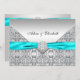 Teal Blue Lace Diamond Ribbon Wedding 5x7 Invitation