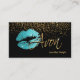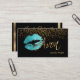 Teal Blue Glitter Lips and Elegant Gold Designer Business Cards. Note: Not Real Glitter, this is a print) Please, don't forget to pick your best choice of paper you want your cards to be. ✔Note: Not all template areas need changed. 📌If you need further customization, please click the "Click to Customize further" or "Customize or Edit Design" button and use our design tool to resize, rotate, change text color, add text and so much more. ⭐This Product is 100% Customizable. Graphics and / or text can be added, deleted, moved, resized, changed around, rotated, etc... ⭐99% of my designs in my store are done in layers. This makes it easy for you to resize and move the graphics and text around so that it will fit each product perfectly. 📌 (Please be sure to resize or move graphics if needed before ordering) You can also "TRANSFER DESIGN" on other Zazzle products and adjust the design to fit most of Zazzle items. (button is down on the right side of the page) This design is made with high resolution vector and/or digital graphics for a professional print. 📌NOTE: (THIS IS A PRINT. All Zazzle product designs are "prints" unless otherwise stated under "About This Product" on the left side of this page) The design will be printed "EXACTLY" like you see it on the screen and on the product...so please make sure when you do your changes on the resizing of any of the graphics or text that it fits in the areas correctly and that your spelling and wording is how you like it to be in size, color and font. If you have any questions about the "DESIGN ONLY" or need help please contact me at ✉ siggyscott@comcast.net or visit my store link: https://www.zazzle.com/store/designsbydonnasiggy (Copy and Paste) I'll be happy to help. 📌 ALL OTHER QUESTIONS (shipping, refund, the printing, the product, etc...) please contact Zazzle or the Maker ⭐DIRECTLY⭐. Thank you for the support and stopping by my store - DesignsbyDonnaSiggy. © Donna Siegrist⭐⭐⭐ ZAZZLE promises 100% satisfaction. If you don't absolutely love it, Zazzle will take it back! ⭐⭐⭐ 1-888-8ZAZZLE (1-888-892-9953) Phone hours: Mon - Fri: 9AM - 5PM PT (12PM - 8PM ET)