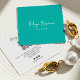 A sleek and stylish square business card featuring a solid and elegant TEAL blue background with your name or company name in an elegant signature script. Fully customizable to match your brand identity—edit the background color, text, and logo effortlessly.