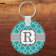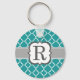Teal Blue Monogram Letter R Quatrefoil Keychain