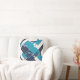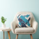 Teal Blue Navy on Off-white Diagonal Abstract Art Throw Pillow