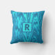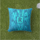 Teal Blue Ocean Wave Abstract Monogrammed Initials Outdoor Pillow