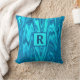 Teal Blue Ocean Wave Abstract Monogrammed Initials Throw Pillow