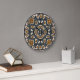 Teal Blue Ochre Brown Hip Bohemian Bali Art Motif Large Clock