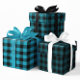 Blue teal and black buffalo plaid pattern wrapping paper sheets.