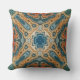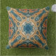 Teal Blue Orange Mustard Brown Orient Tribal Art Outdoor Pillow